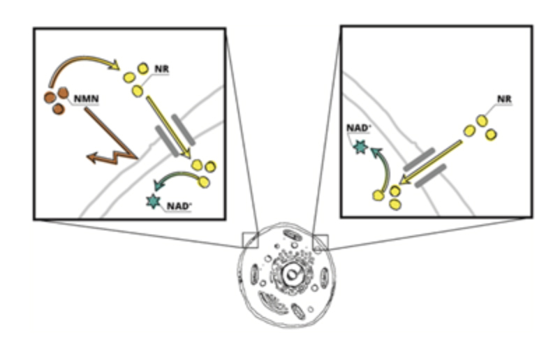 Outside of the cell, NMN cannot cross the cell barrier directly and must first be converted to NR (Graphic: Business Wire)